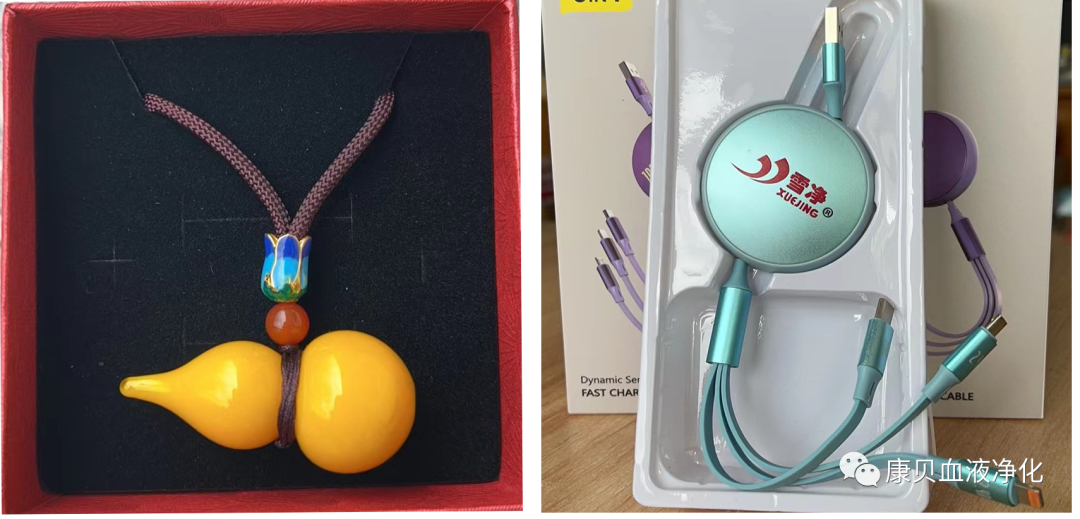 康貝為您準備了兩款精美小禮品:淄博琉璃飾品和三合一手機充電線。