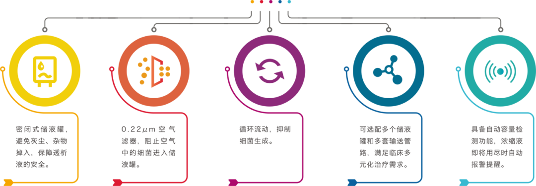 配液系統(tǒng):設(shè)備配備1um濾器和0.22um濾器雙重保證透析液的質(zhì)量;