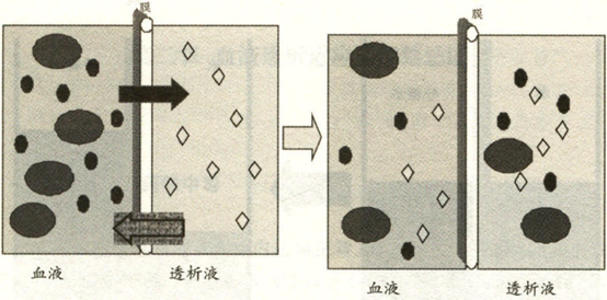 血液透析:小分子水溶性物質通過彌散作用通過半透膜