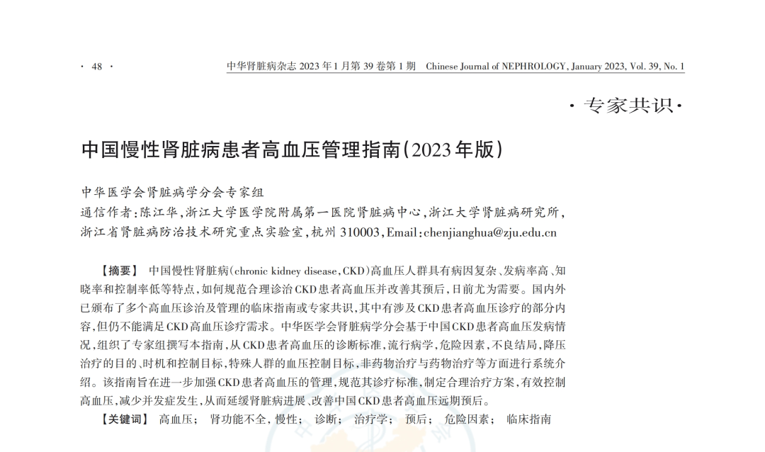 《中國慢性腎臟病患者高血壓管理指南(2023年版)》推薦——
