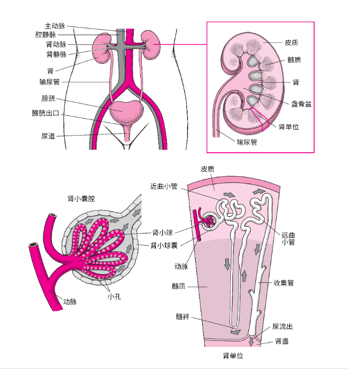 人體需要規律攝取水以維持生命。食物的代謝過程也可以產生一定量的水。如果機體攝入的水與排出的水不匹配,水平衡被打破,人會生病,甚至死亡。體內水過多會稀釋電解質,而水過少又會使其濃縮。機體的電解質必須維持在一定的濃度范圍。腎臟調節著并有助于維持水和電解質的恰當平衡。