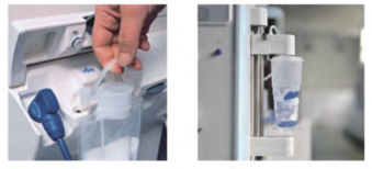 聯(lián)機(jī)B干粉與透析機(jī)的連接(左為聯(lián)機(jī)干粉袋,右為聯(lián)機(jī)干粉桶)[2]