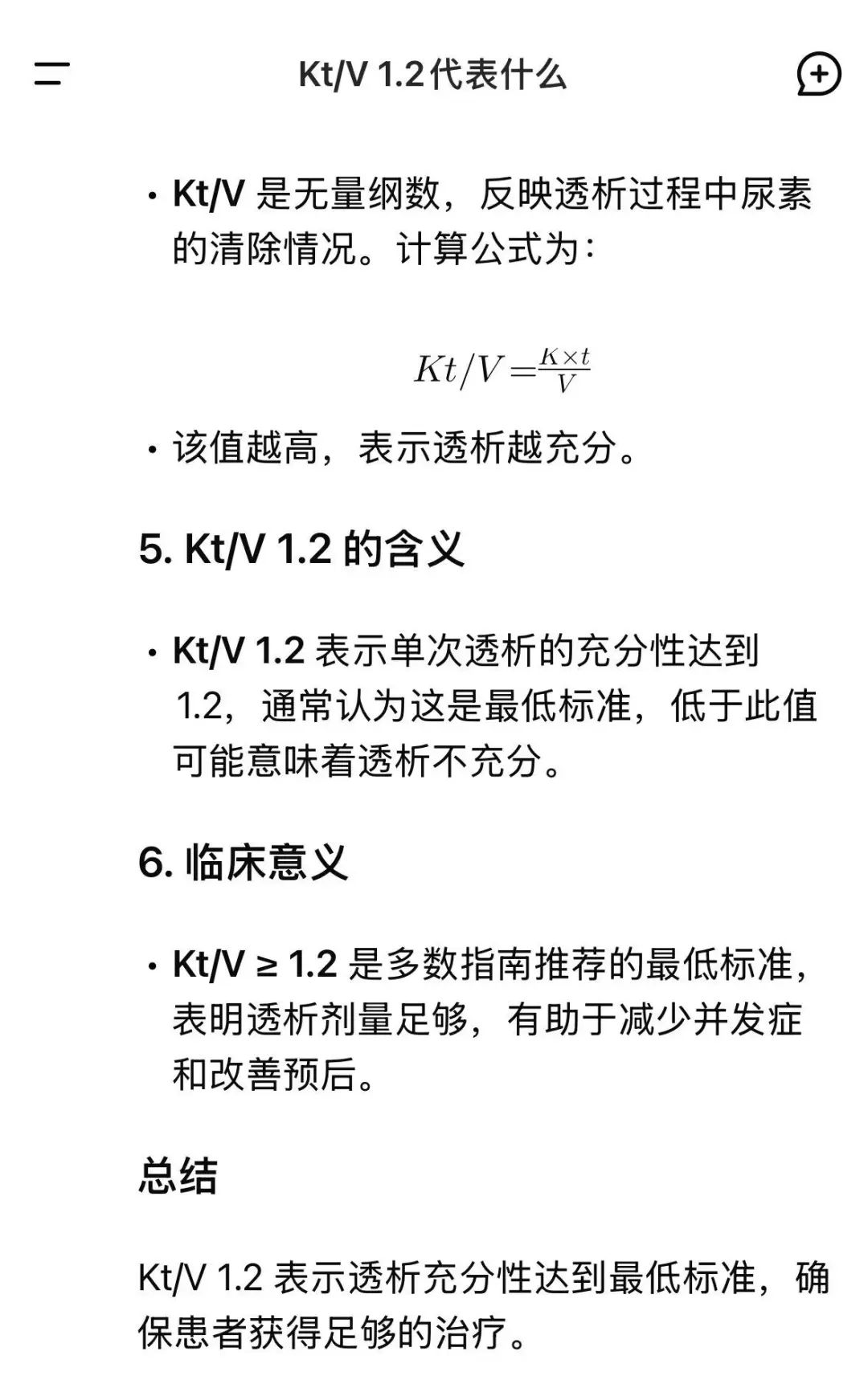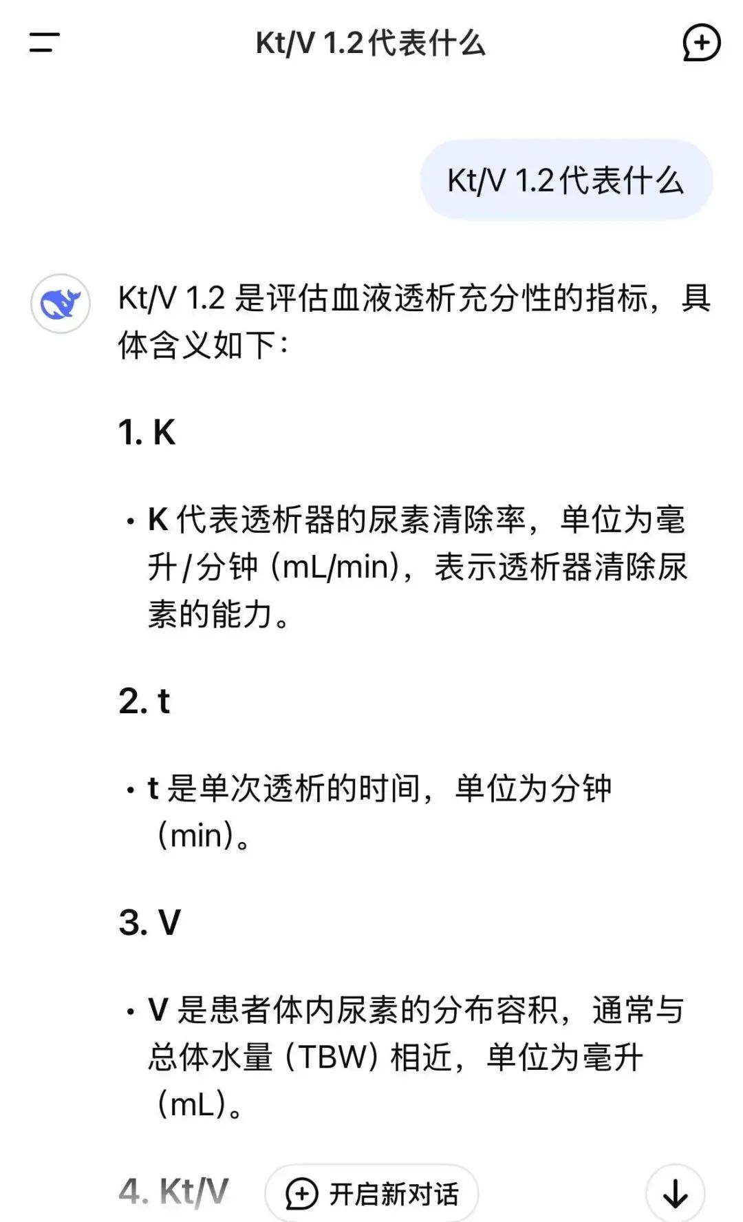 例如,輸入“Kt/V 1.2代表什么”。