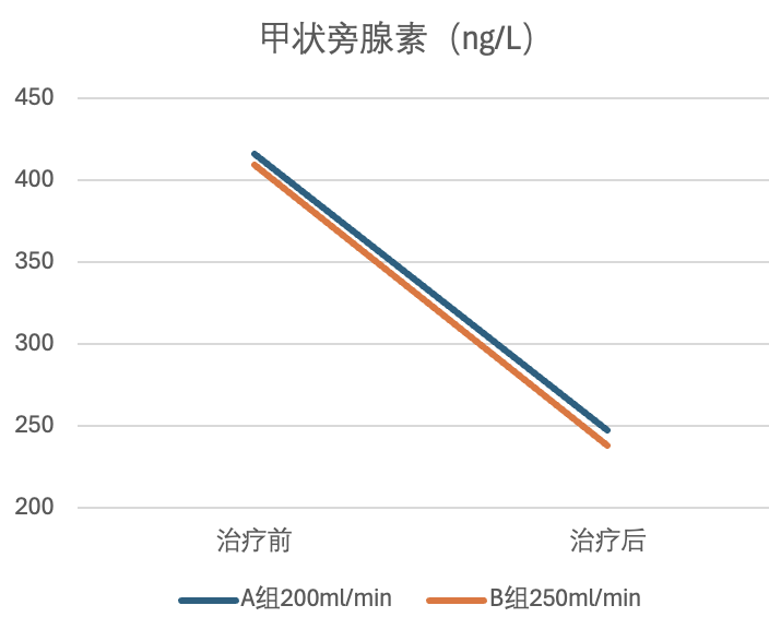 有研究表明,HD+HP治療時,200ml/min的流速與250ml的流速對于機體毒素(肌酐、尿素、β2-微球蛋白、甲狀旁腺素)的清除作用無明顯差異。[1]