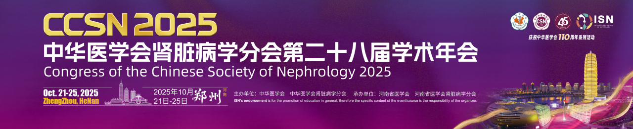 由中華醫(yī)學(xué)會、中華醫(yī)學(xué)會腎臟病學(xué)分會主辦,河南省醫(yī)學(xué)會、河南省醫(yī)學(xué)會腎臟病學(xué)分會承辦的中華醫(yī)學(xué)會腎臟病學(xué)分會第二十八屆學(xué)術(shù)年會(Congress of the Chinese Society of Nephrology 2025, CCSN2025)定于2025年10月21-25日在鄭州市舉行。